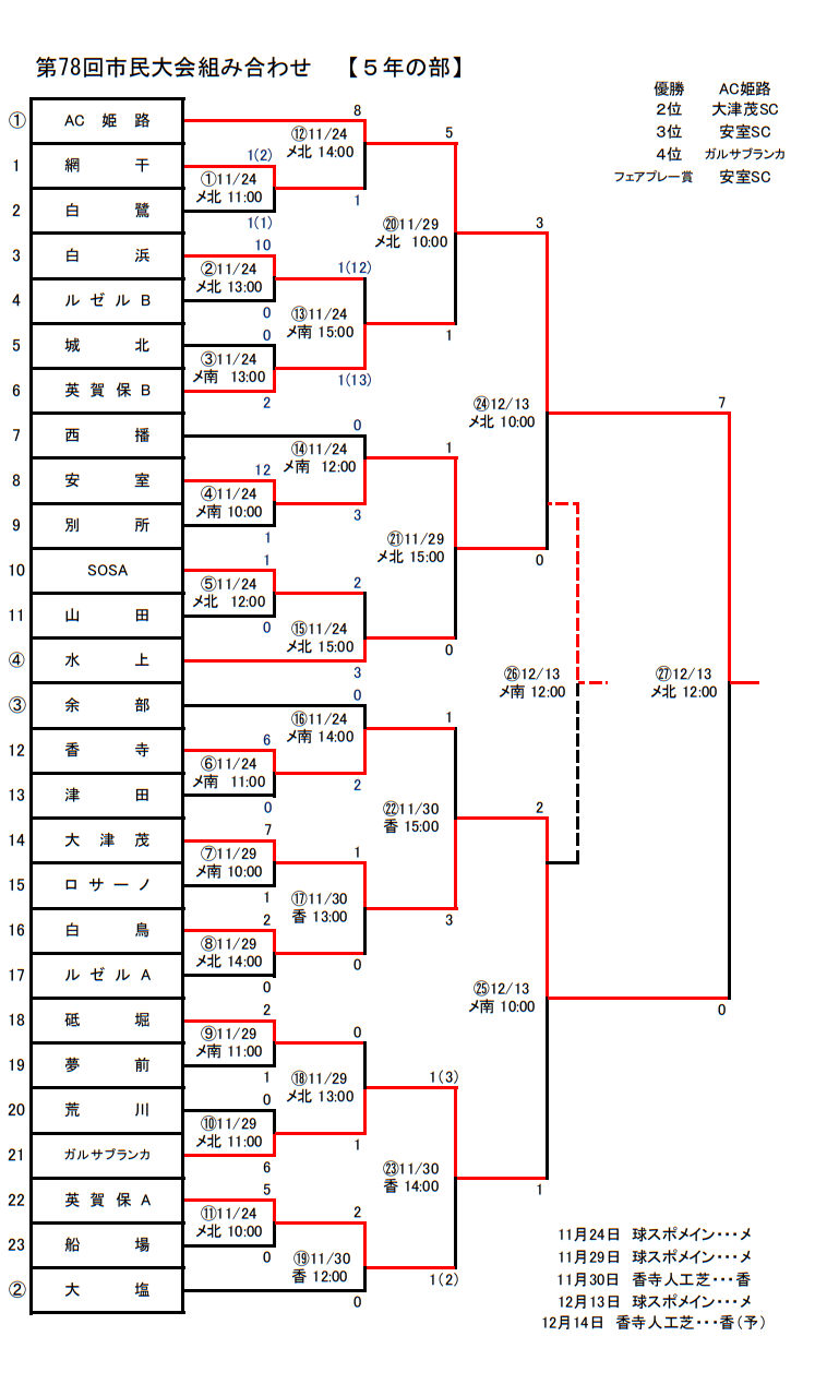 11/29 AC姫路 5-1 英賀保B