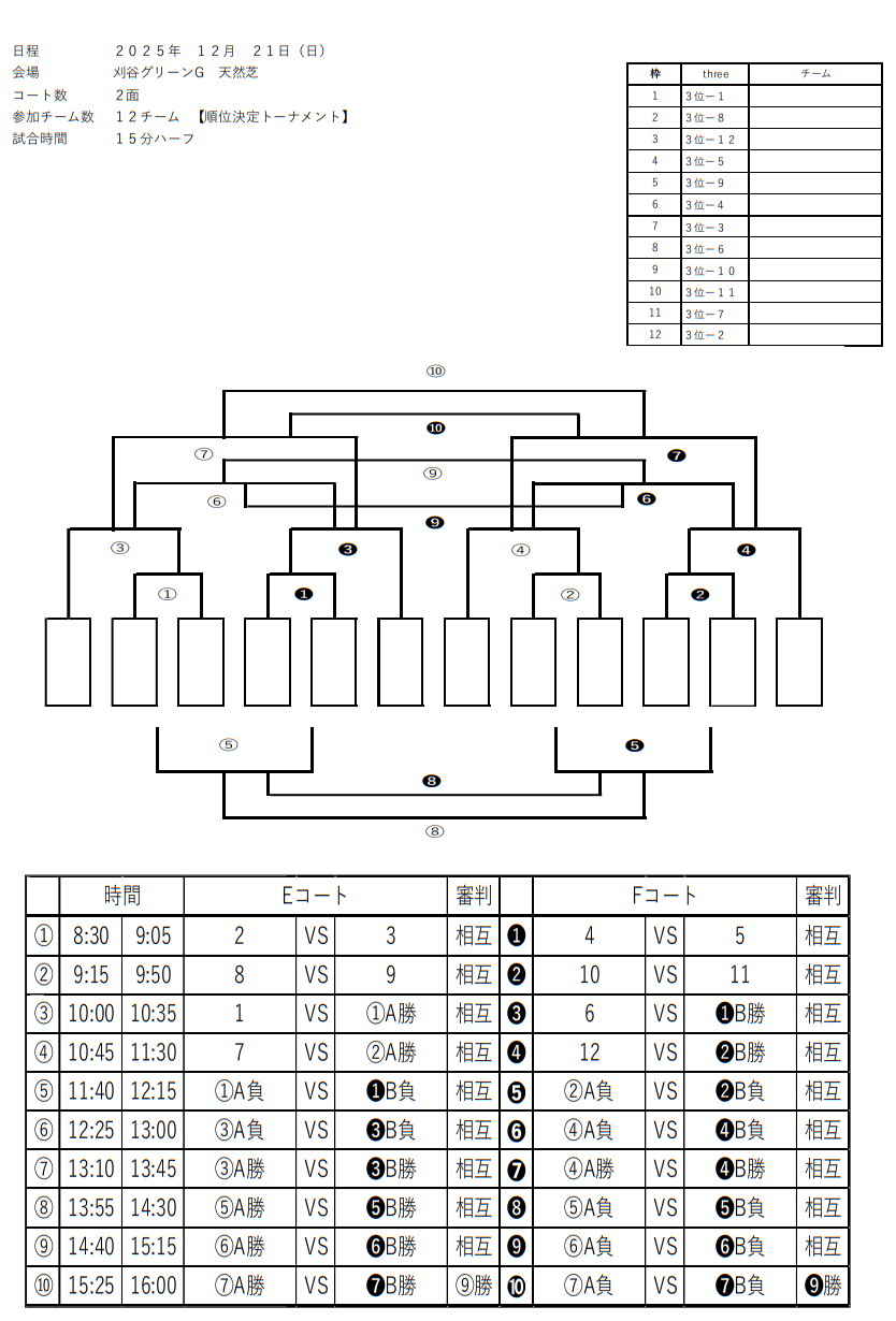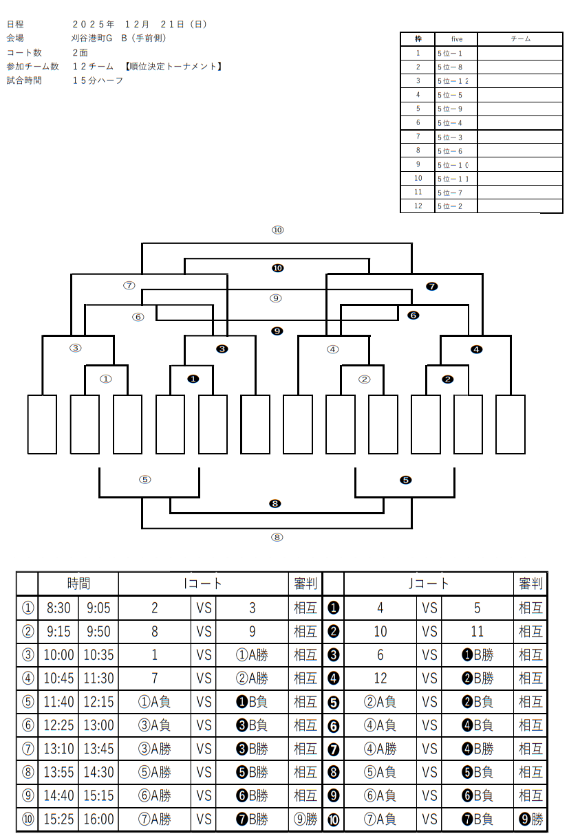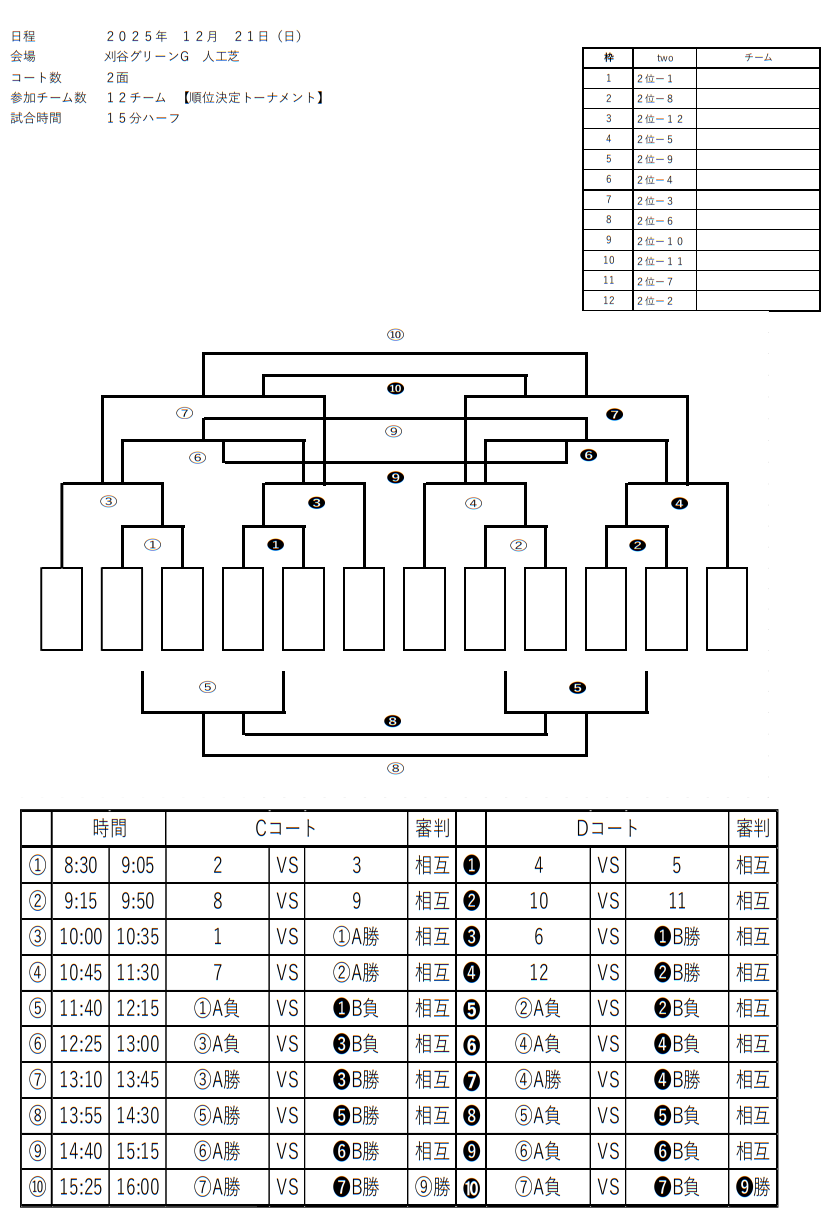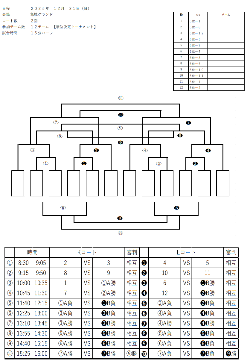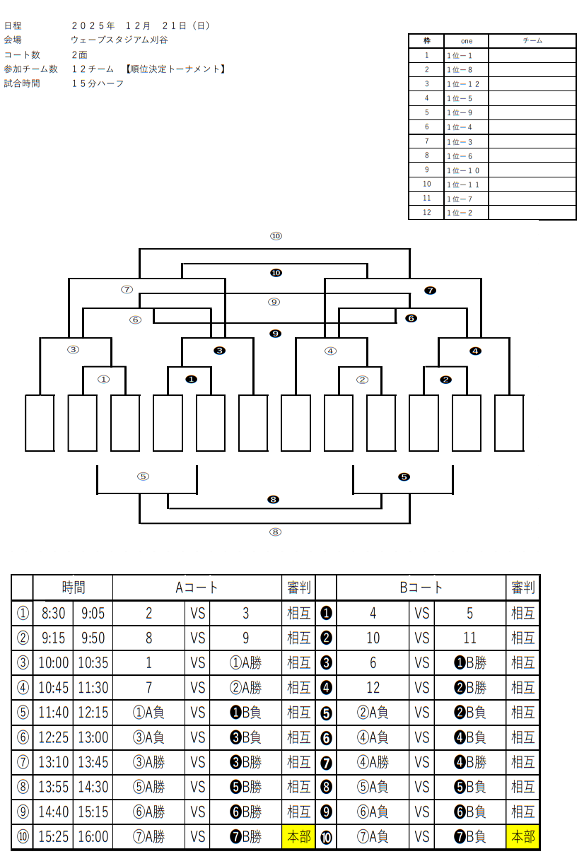 ■令和7年12月21日(日) 順位決定トーナメント戦