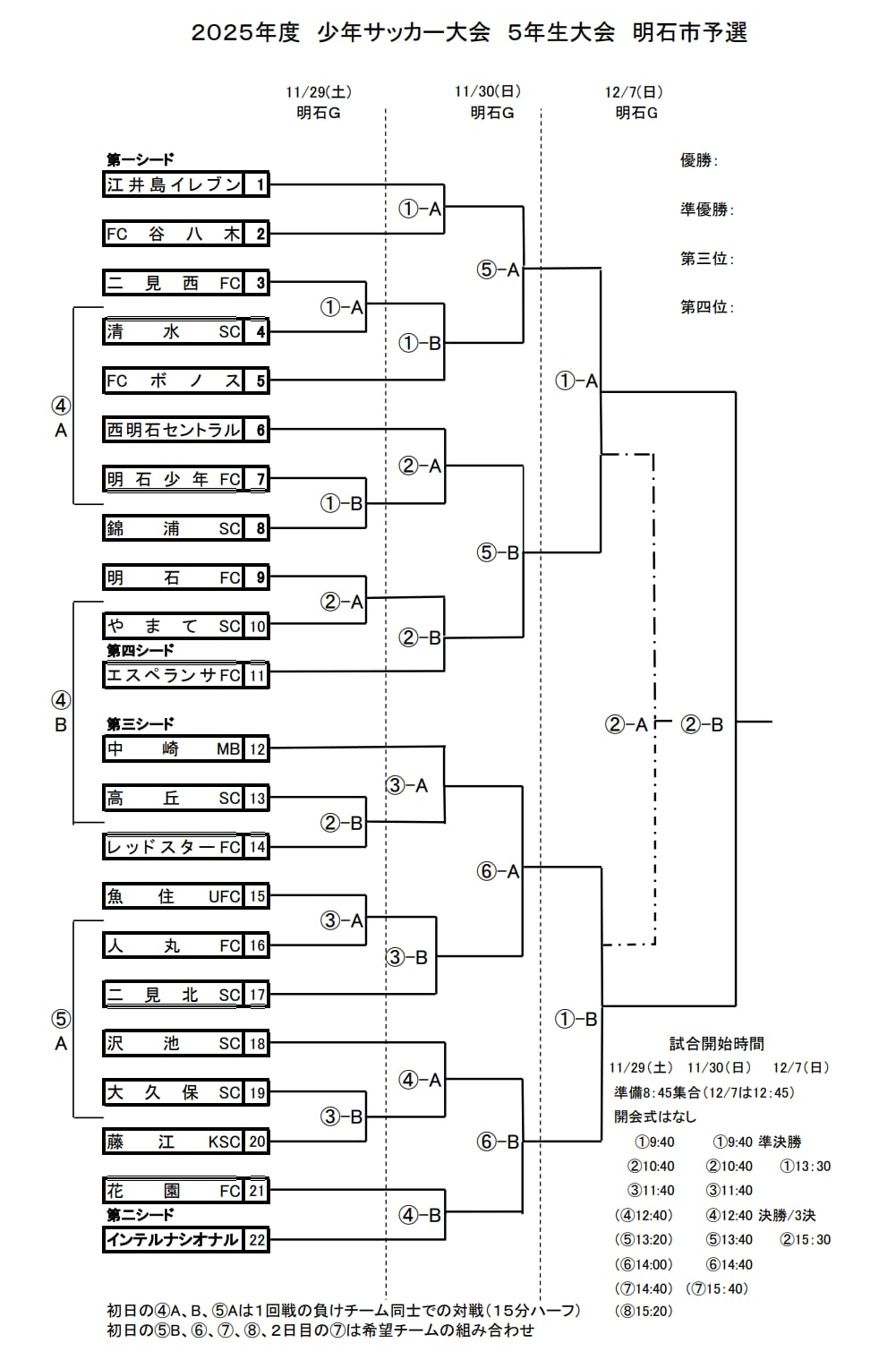2025年度 明石少年サッカー5年生大会・第32回関西小学生サッカー大会 明石予選