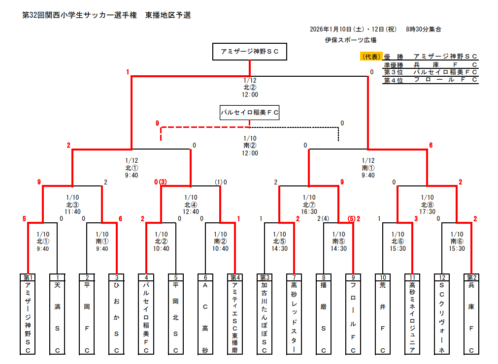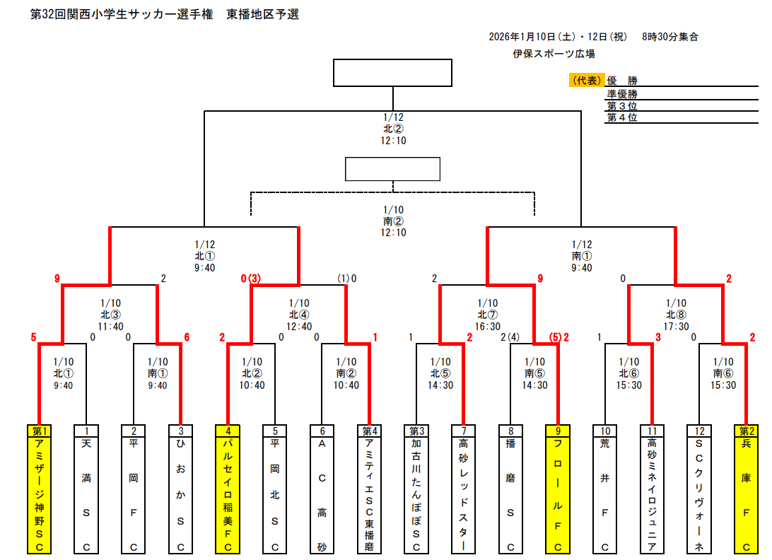 優勝チームは、東播地区を代表して、兵庫県大会(2026年2月14日・15日・21日/神戸地区)への参加資格を与える。(県大会東播枠 1 枠)