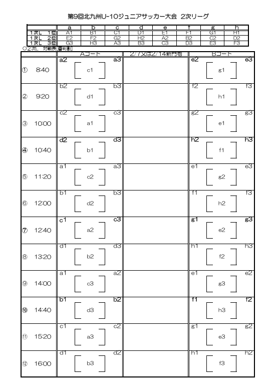2次リーグ(2/7、2/14)