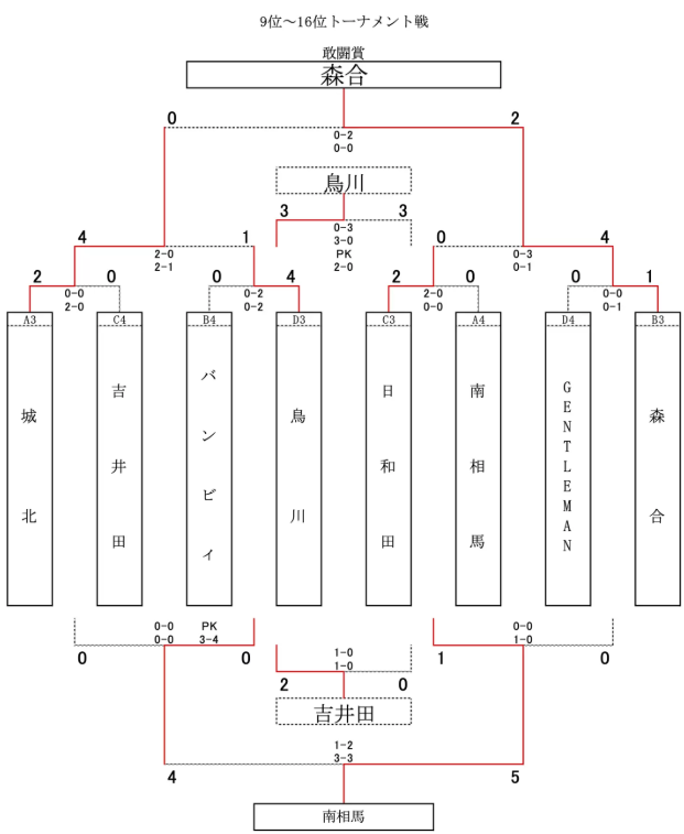 イ 順位トーナメントは、PK方式により次回戦への進出チームを決定する。ただし、優勝決定戦は10分(前後半5分)の延長戦を行い、勝敗が決しない場合はPK方式により優勝チー