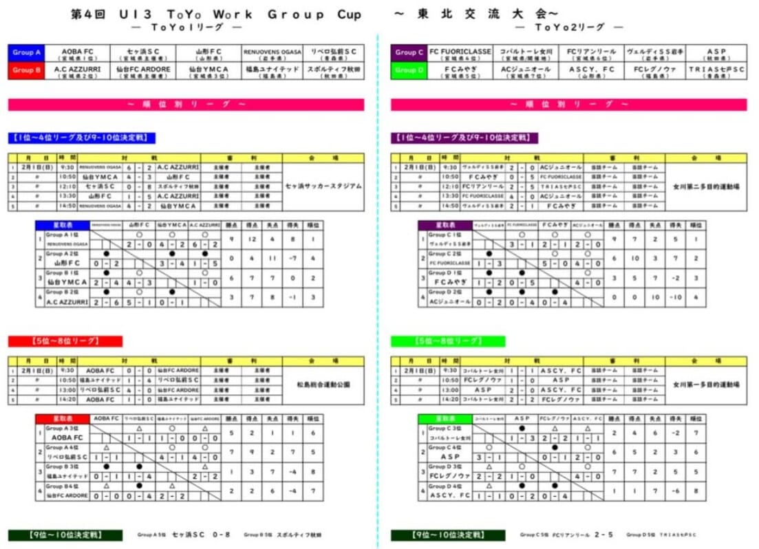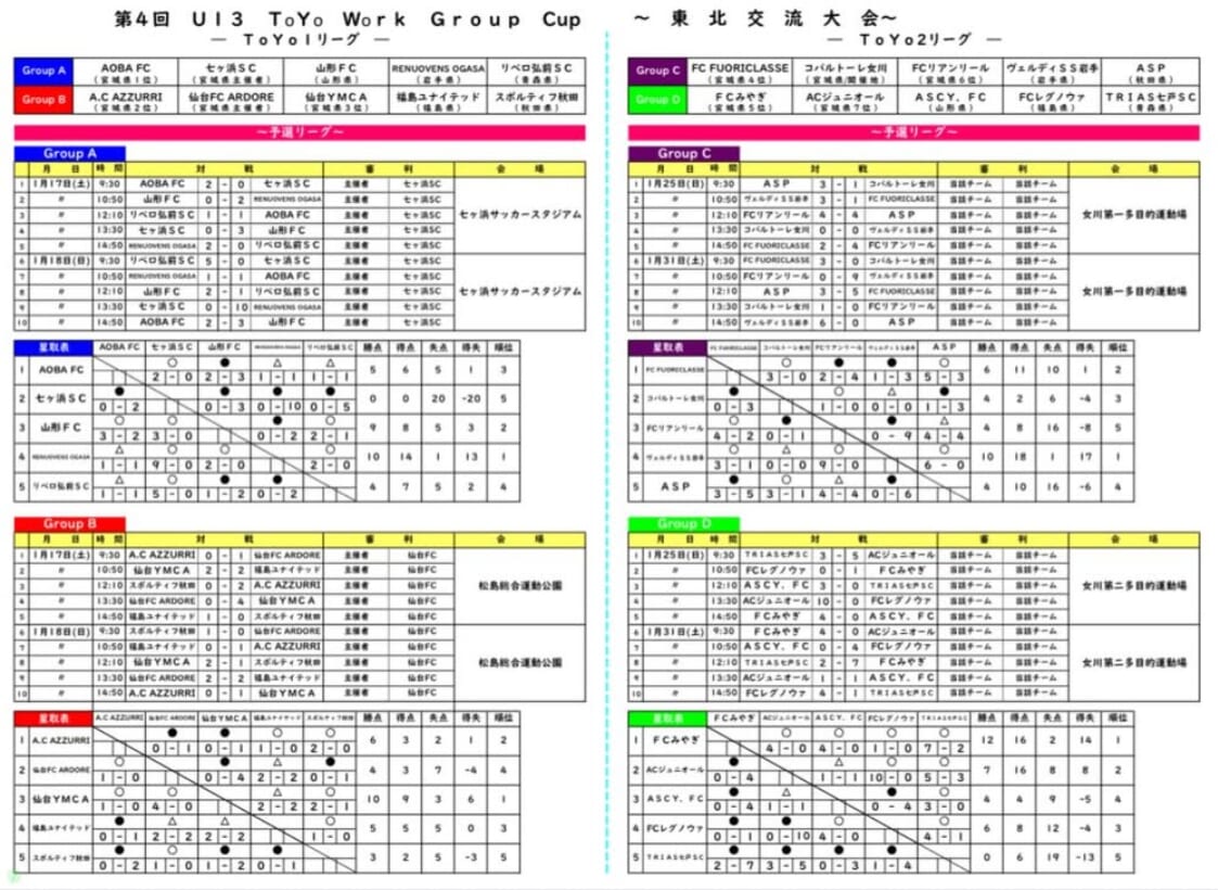 第4回U13 ToYo Work.Group 東北交流大会の組合せ情報ありがとうございます!