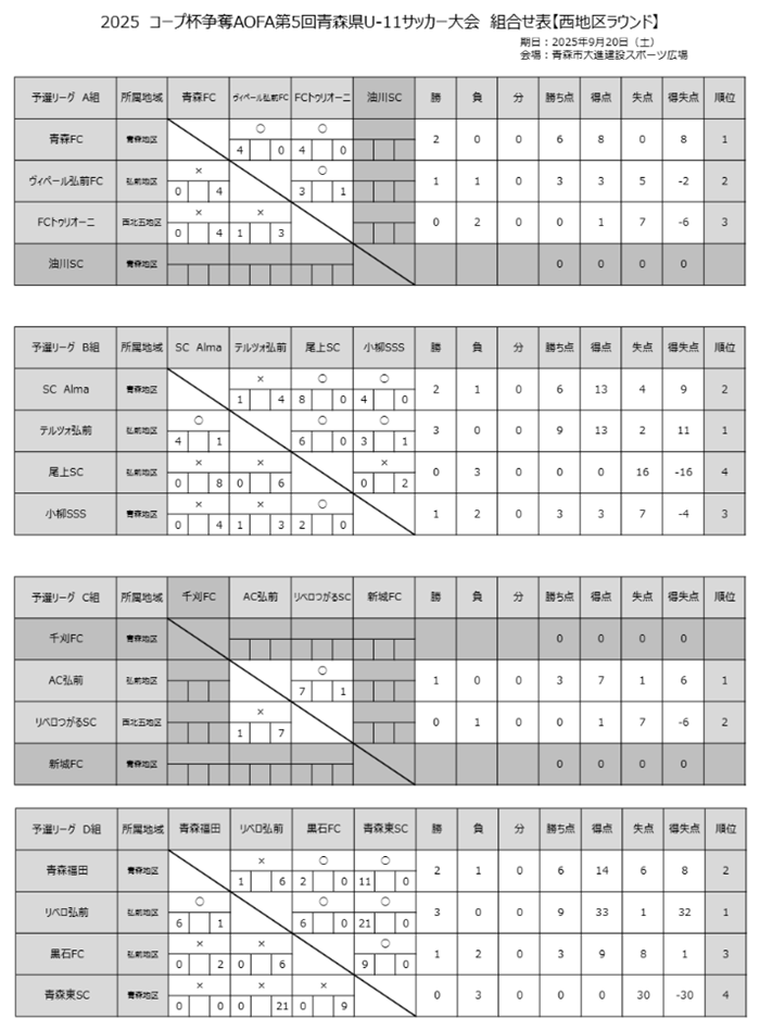 コープ杯争奪AOFA2025第5回青森県U-11サッカー大会(チビリンピック青森県予選)兼 JA全農杯 全国小学生選抜サッカー大会 青森県大会