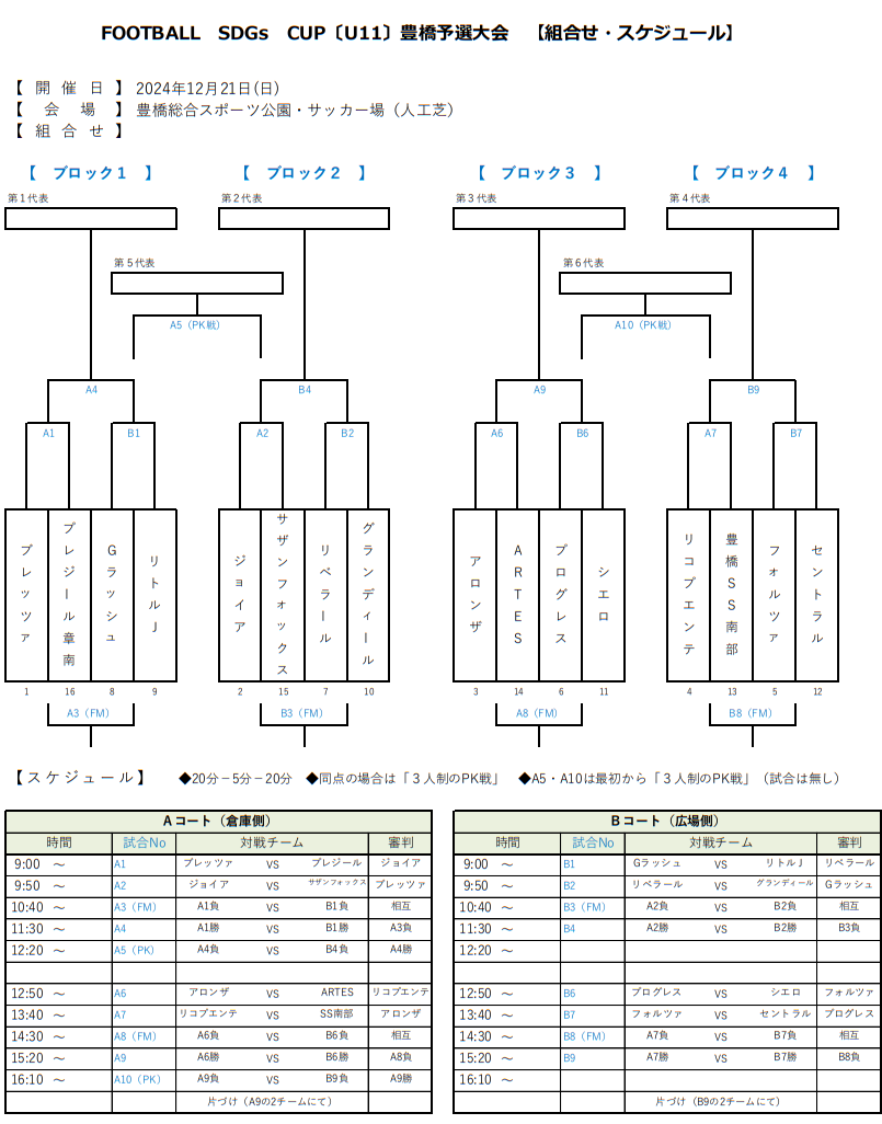 2024年度 第5回 Football SDGs CUP inTOYOHASHI 豊橋予選会(愛知)リトルJ、Gラッシュ、リコプエンテ、ジョイア、フォルツァ、リベラールが本戦出場!