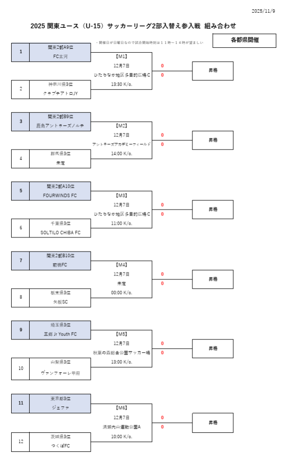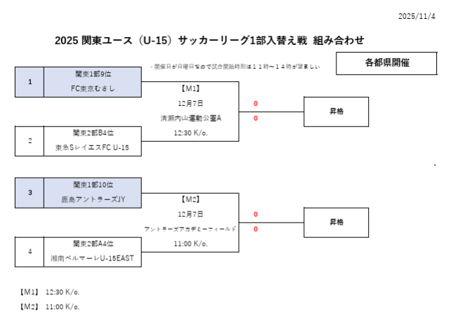 2024年度 関東ユース(U-15)サッカーリーグ 1部入替え戦・2部入替え参入戦