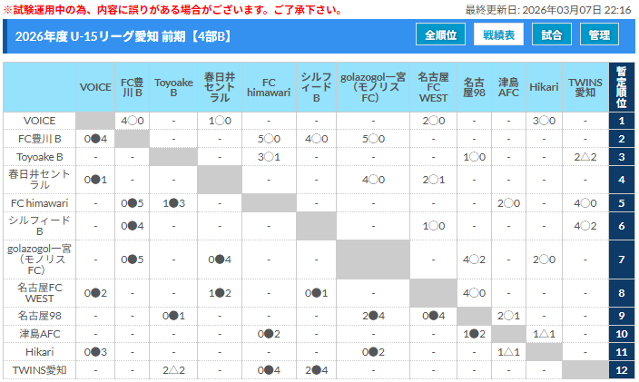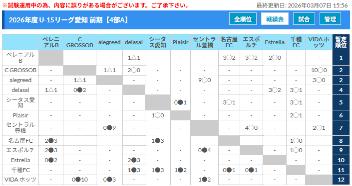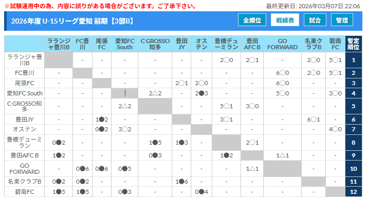 ・高円宮杯 JFA U-15リーグ愛知1部・2部