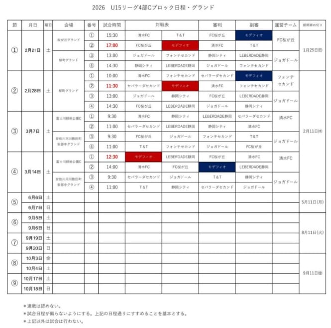 高円宮杯JFA U-15サッカーリーグ2026静岡4部ABC