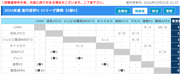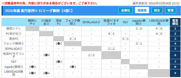 高円宮杯 JFA U-15サッカーリーグ静岡 4部