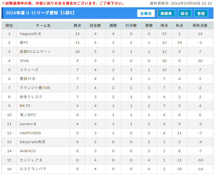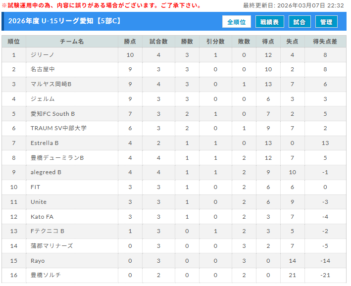 ・高円宮杯 JFA U-15リーグ愛知3部・4部