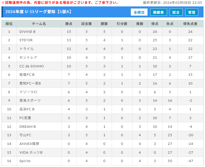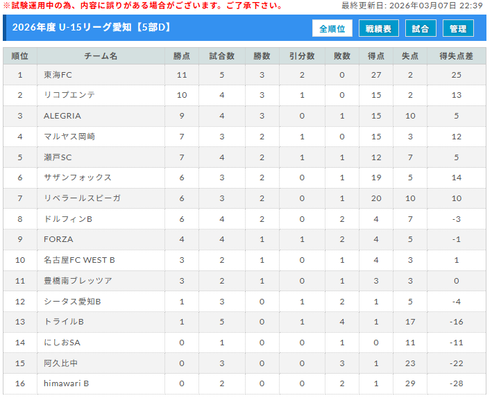 高円宮杯 JFA U-15サッカーリーグ愛知2026 5部