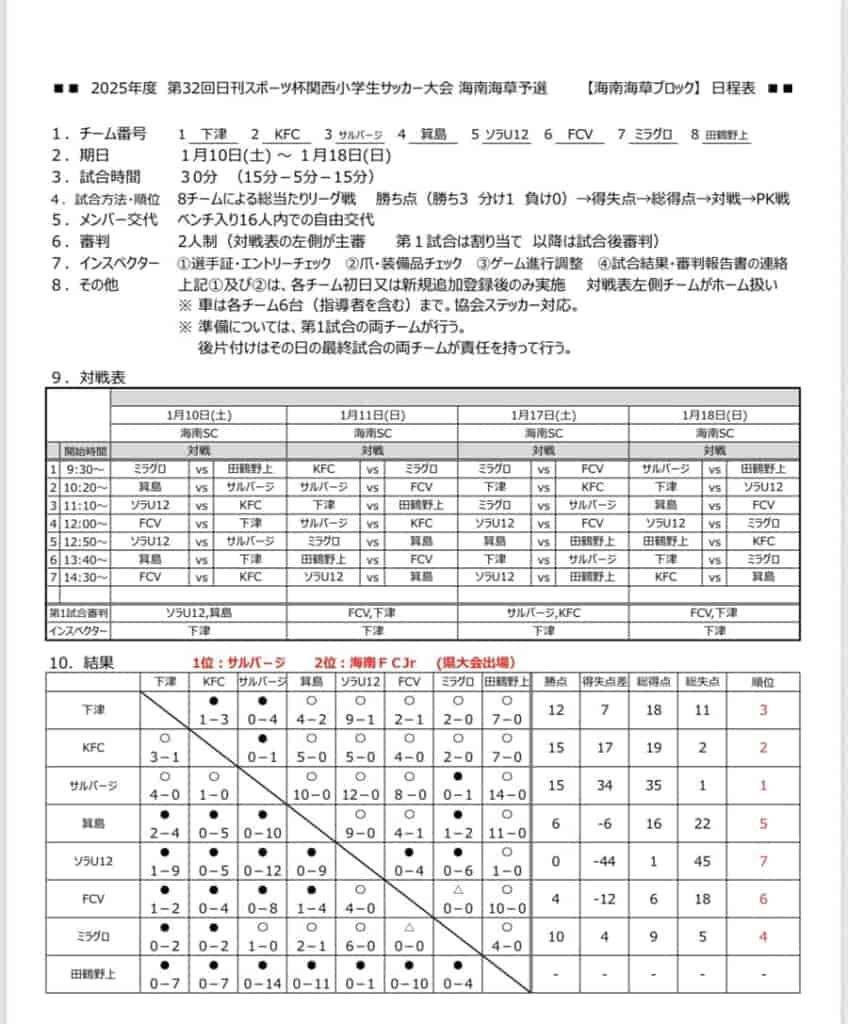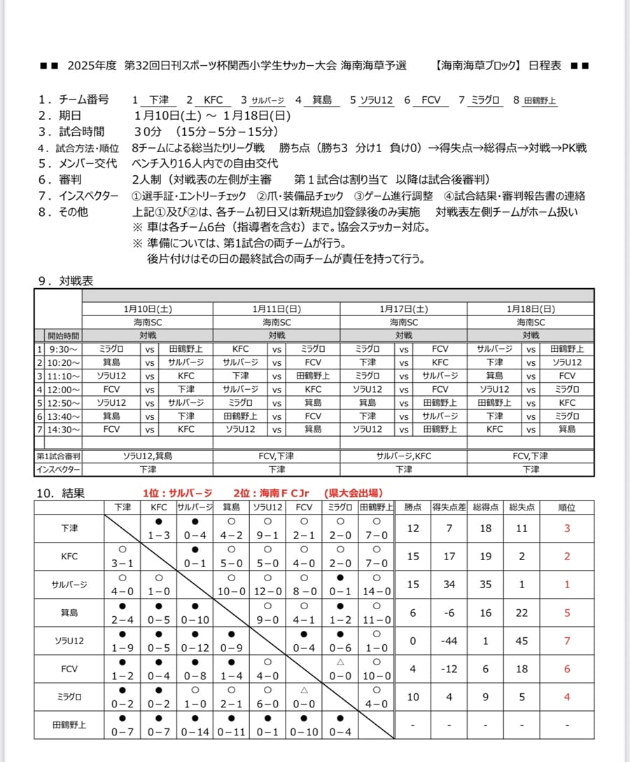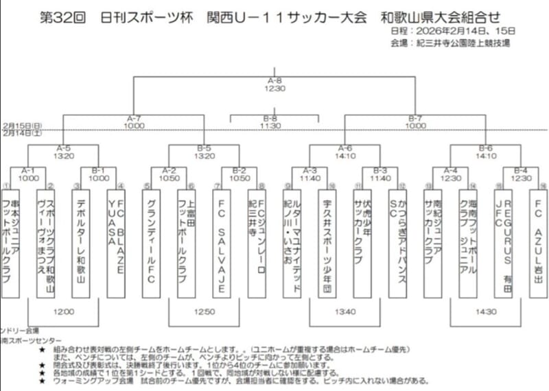 第32回関西小学生サッカー大会 和歌山県大会の組合せ情報ありがとうございます!