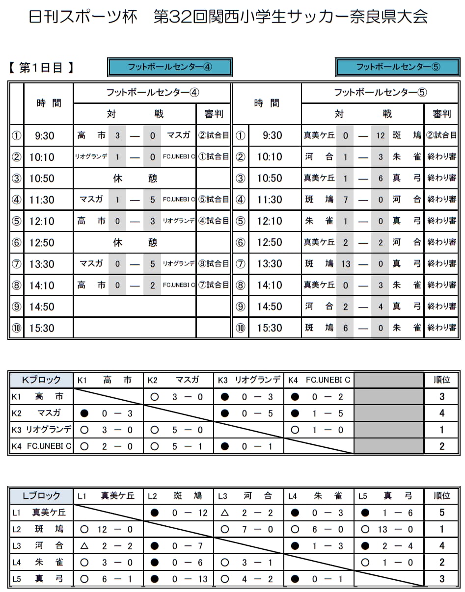 1位:リオグランデ、2位:FC.UNEBI C、3位:高市、4位:マスガ