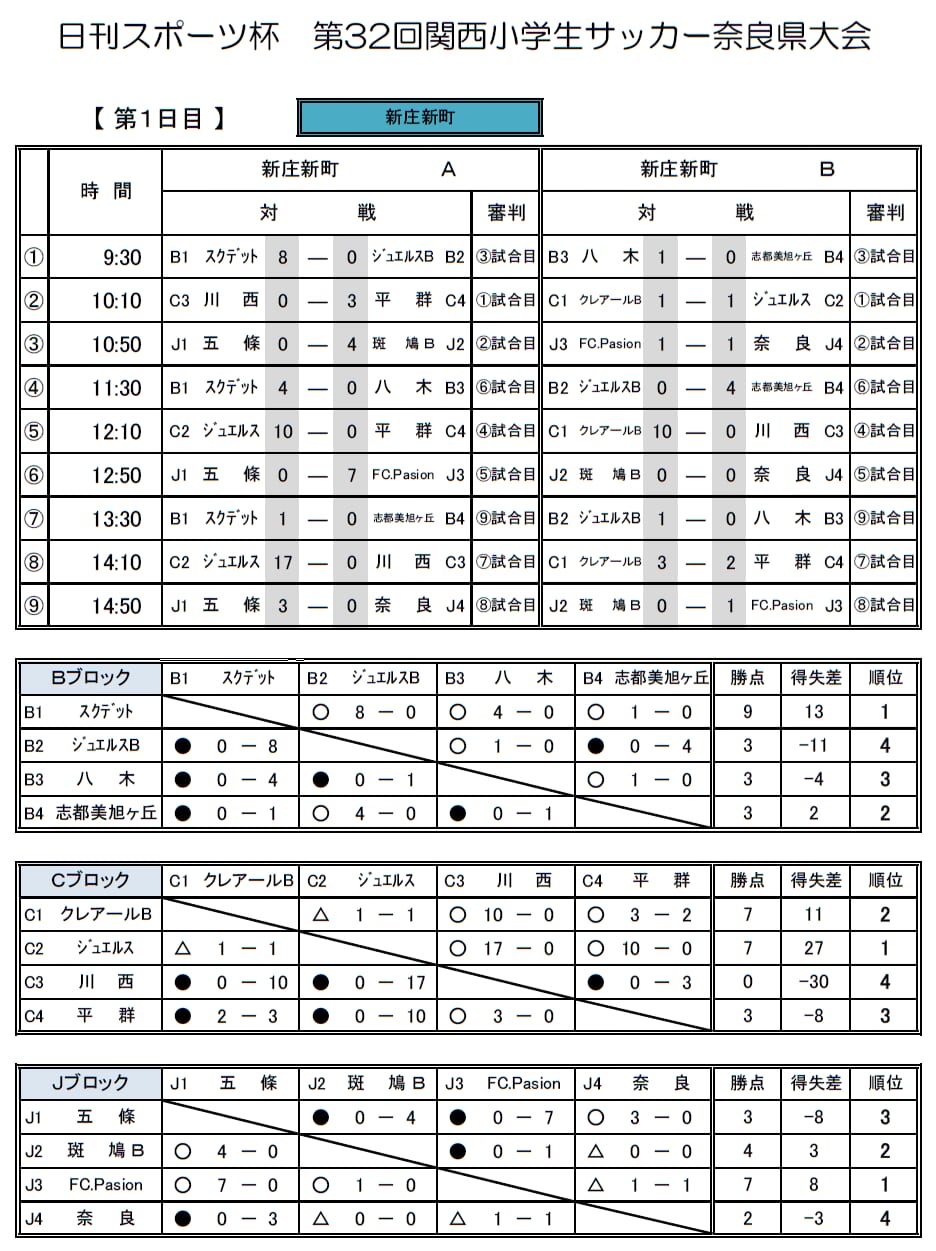 1位:ジュエルス、2位:クレアールB、3位:平群、4位:川西