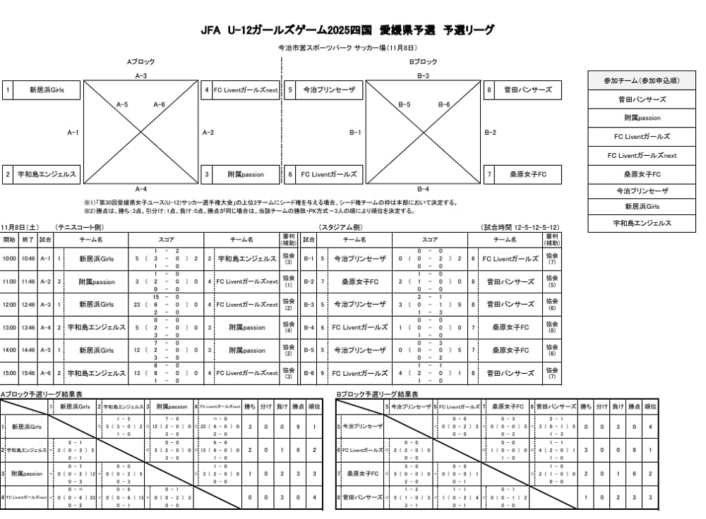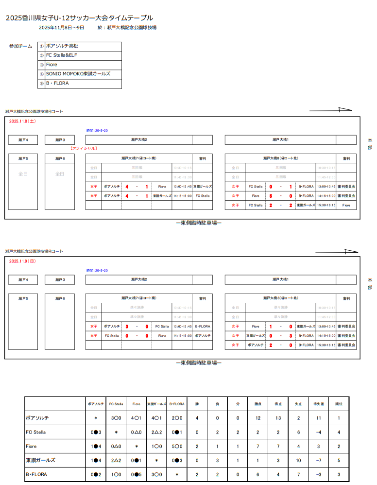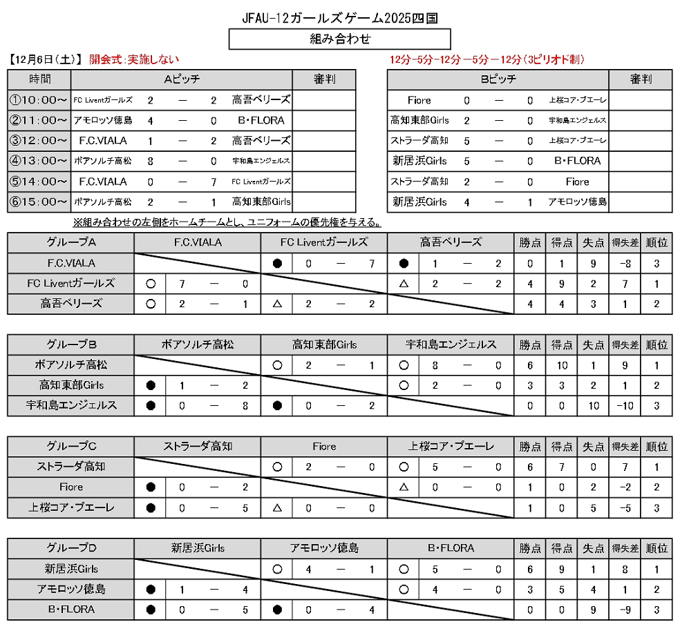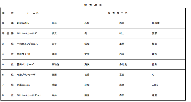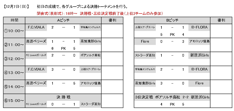 グループA:1位 FC Liventガールズ、2位 高吾ベリーズ、3位 F.C.VIALA