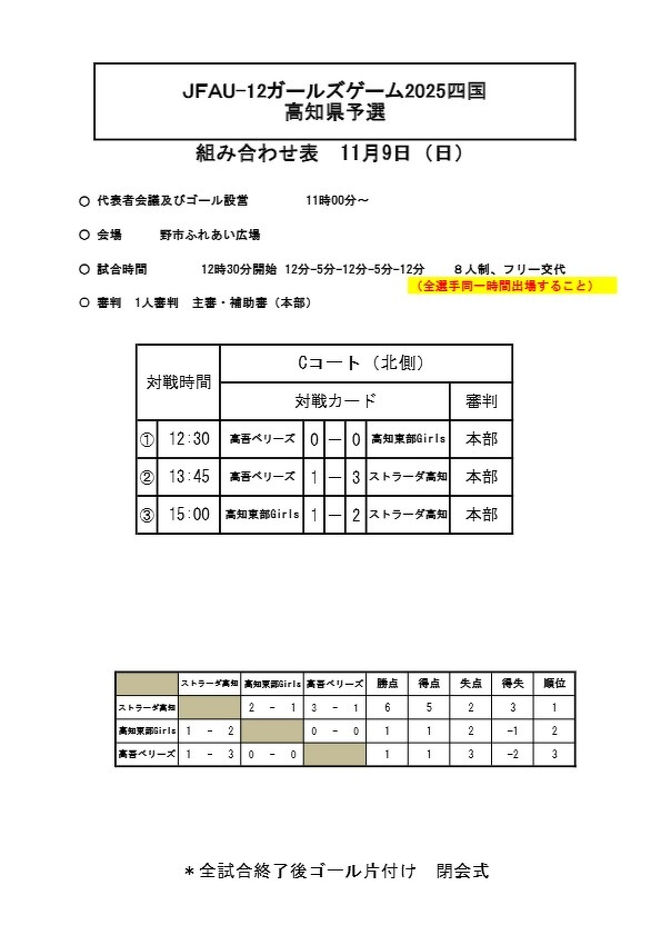 グループC:1位 ストラーダ高知、2位 Fiore、3位 上桜コア・プエーレ