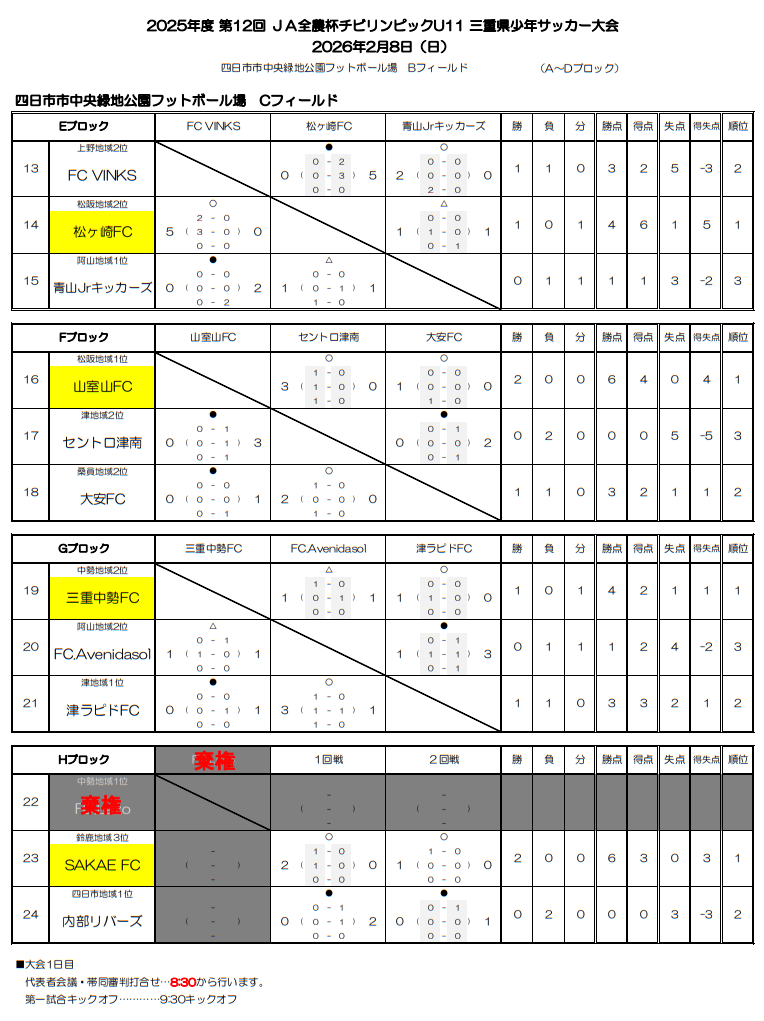 2024年度 第11回JA全農杯チビリンピックU11三重県少年サッカー大会 SAKAE FC、アフェラルセ四日市がブロック優勝!東海大会出場決定!