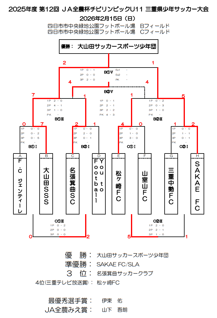 1位:大山田SSS、 3位:アフェラルセ四日市、2位:伊勢MTK