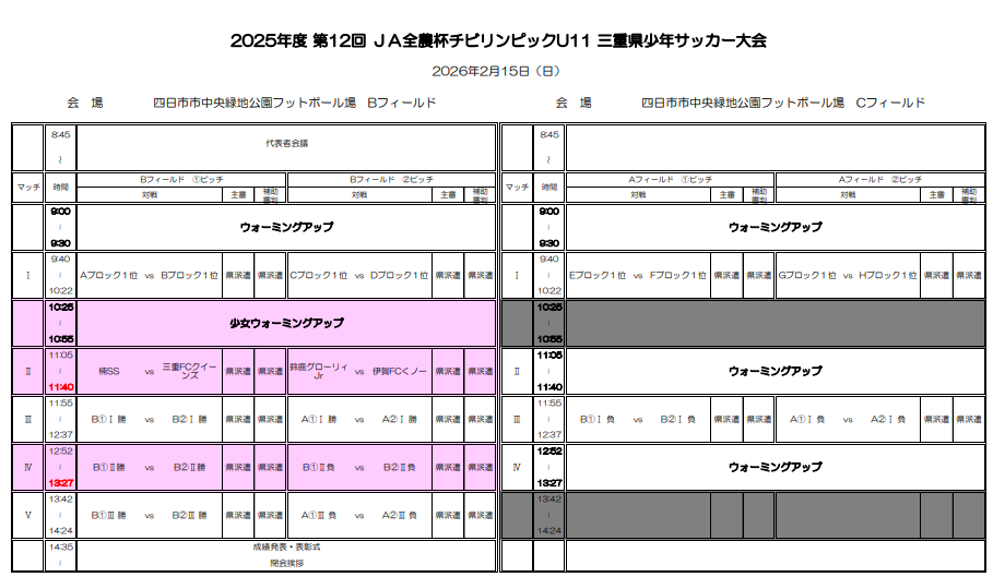 2025年度 第12回JA全農杯チビリンピックU11三重県少年サッカー大会 少女の部