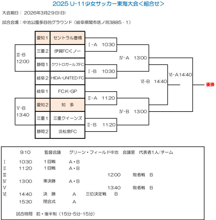 少女 静岡県(2)三重県(2)愛知県(2)岐阜県(2) 8チーム