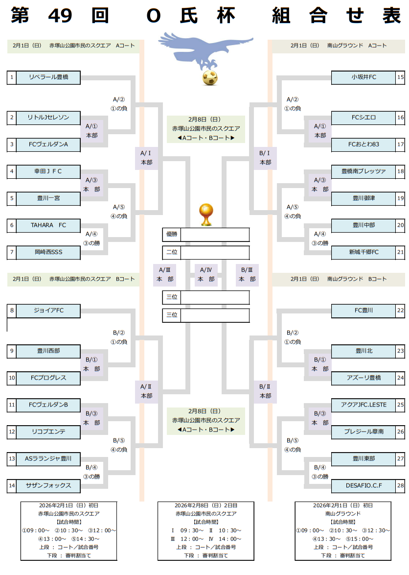 試合時間は前、後半とも20分間とし、ハーフタイムのインターバル(前半終了の笛から後半開始まで)は 10分以内とする。