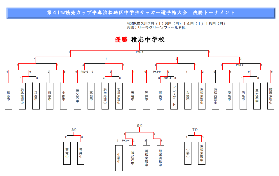 2024年度 第40回読売カップ争奪 浜松地区中学生サッカー選手権(静岡)読売カップ優勝は天竜東!チャンピオンシップは浜松開誠館の勝利!情報提供ありがとうございます!