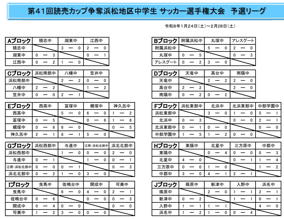 2025年度 第41回読売カップ争奪 浜松地区中学生サッカー選手権大会 西部春季大会予選