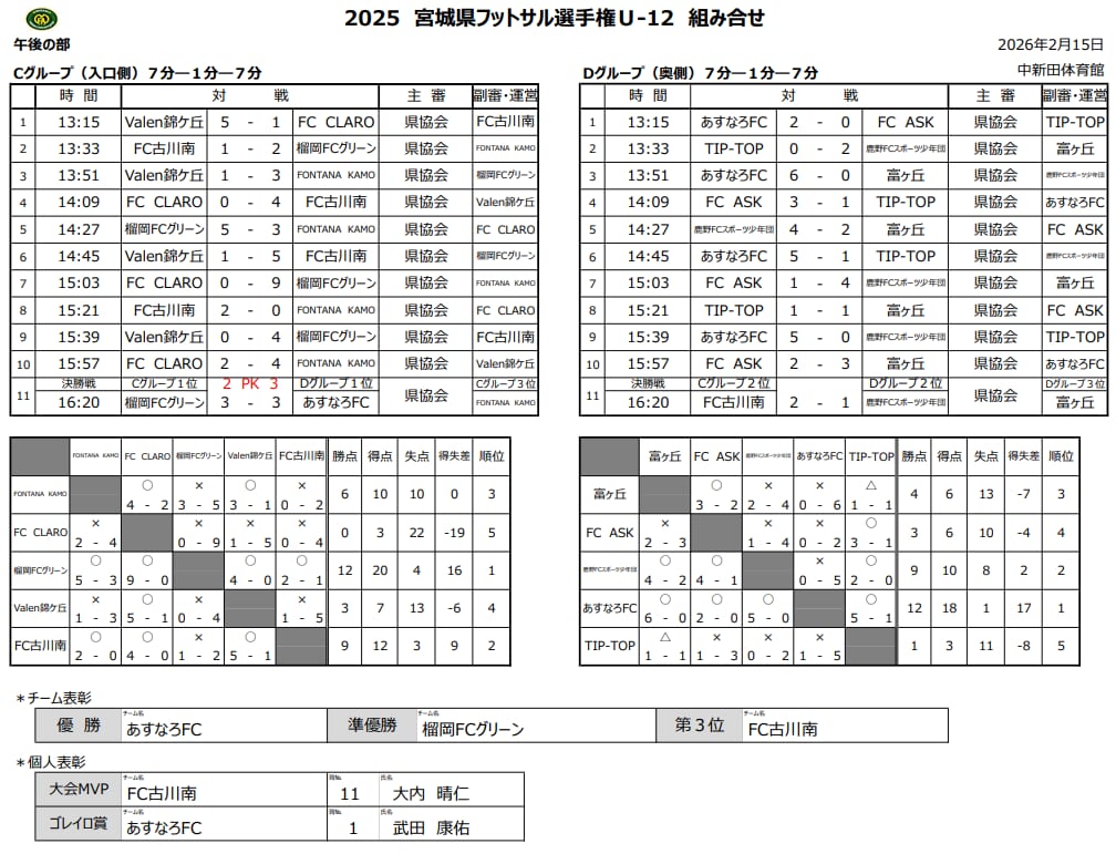 あすなろFC 3-3(PK3-2) 榴岡FCグリーン