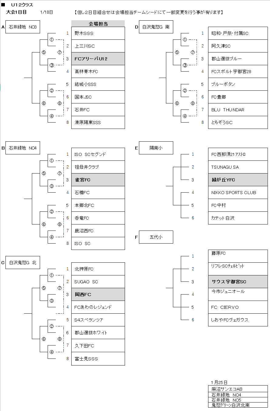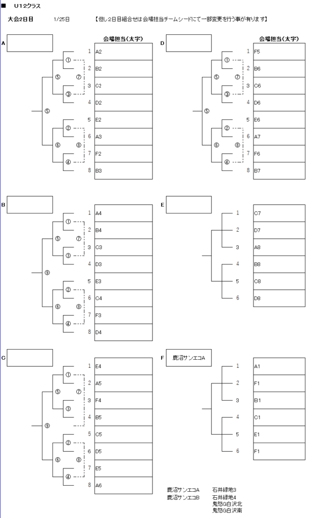 (3)大会2日目組合せは大会運営上会場シードを優先とする。(正しA.Bクラス1位は除く)