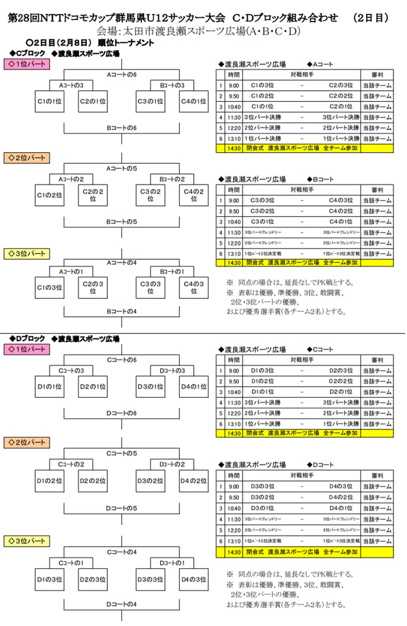 試合方法1グループは基本12チーム(4組×3チームによるリーグ戦、参加チーム数により変更)とし、各組1~3位同士のトーナメントを行う。
