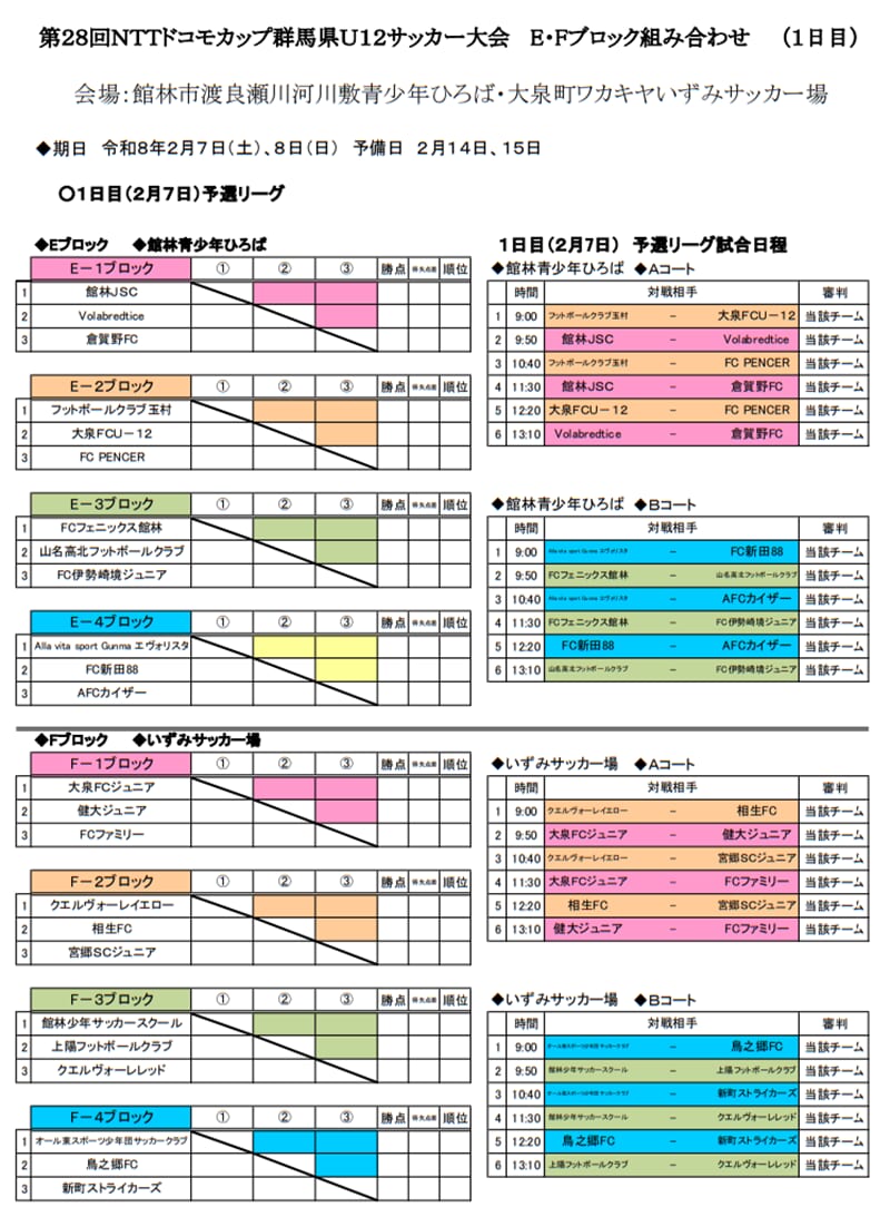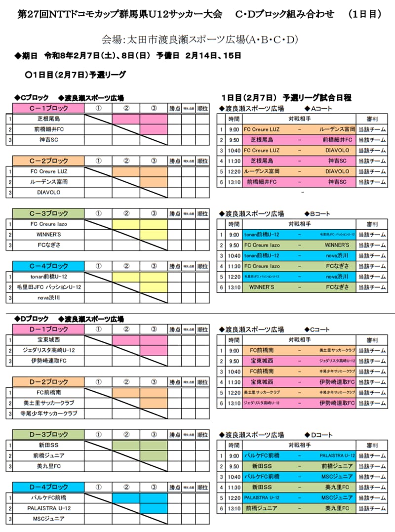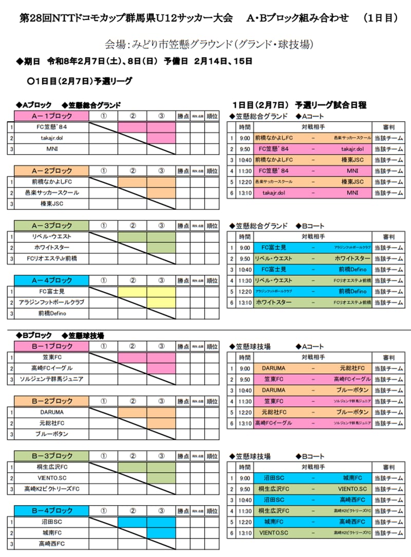 2025年度 第28回NTTドコモカップ群馬県U12サッカー大会