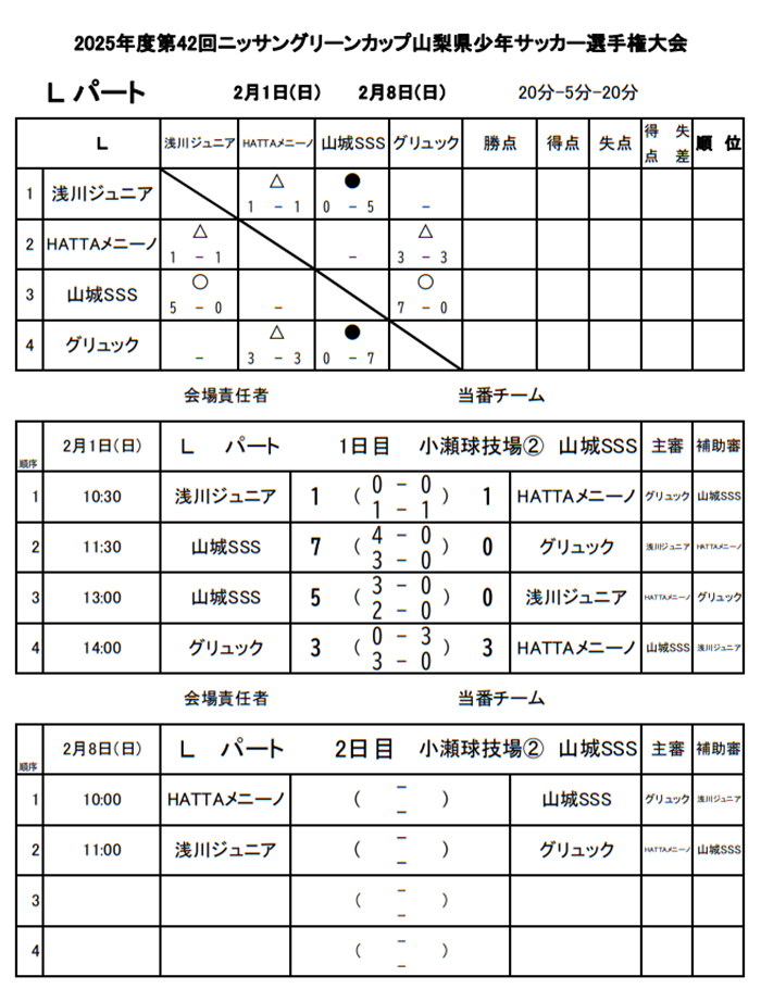 浅川ジュニアSSS、HATTA SCメニーノ、山城SSS、グリュック
