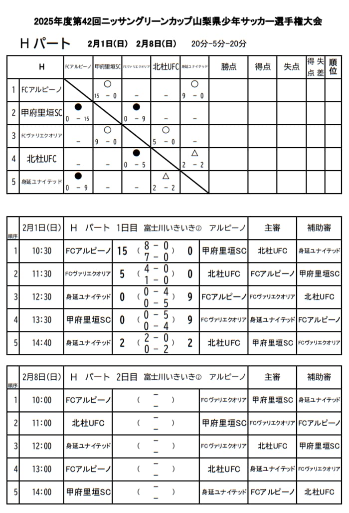 Fantasista FC、八ヶ岳グランデFC、甲府相川JFC、玉穂FC、FCラーゴ・グリーン