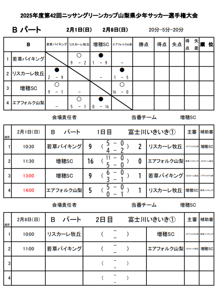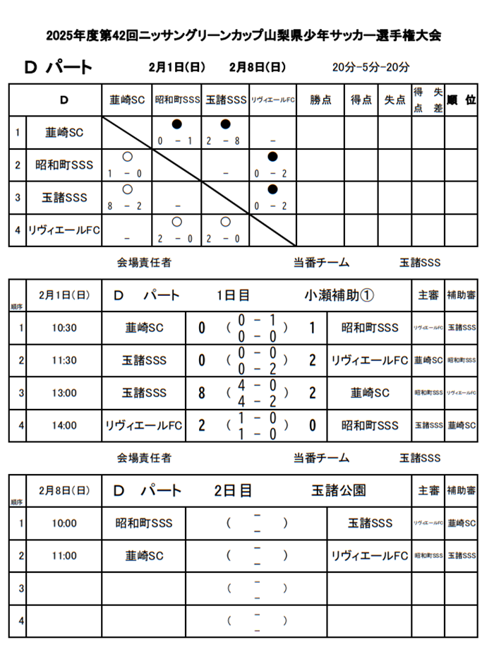 韮崎SC、昭和町SSS、玉緒SSS、リヴィエールFC