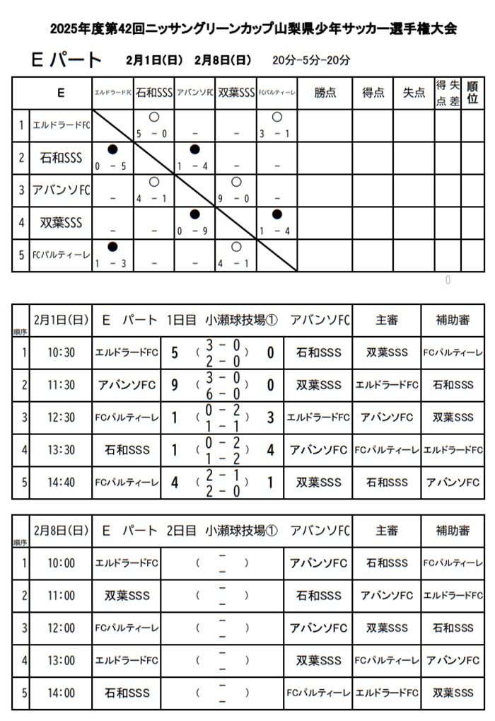 エルドラードFC、石和SSS、アバンソFC、双葉SSS、FCパルティーレ