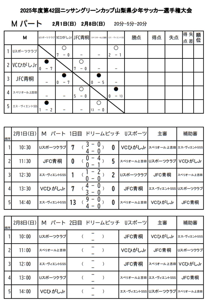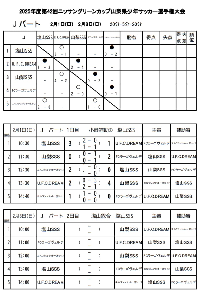 塩山SSS、U.F.C.DREAM、山梨SSS、FCラーゴ・ヴェルデ、エルフシュリット一宮U12