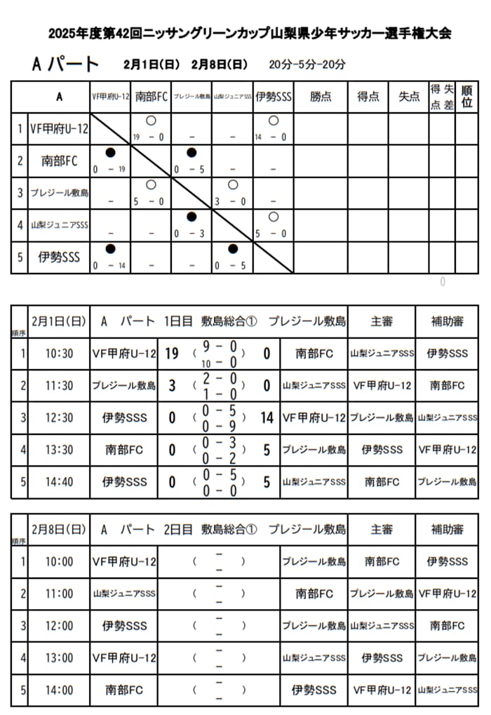 VF甲府U12、南部FC、プレジール敷島、山梨ジュニアSSS、伊勢SSS
