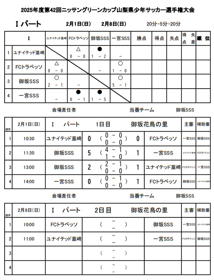 ユナイテッド韮崎FC、FCトラベッソ、御坂SSS、一宮SSS