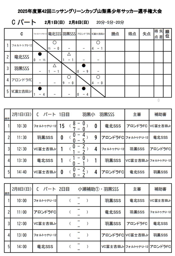 フォルトゥナU12、竜北SSS、羽黒SSS、アロンドラFC U-12、VC富士吉田Jr