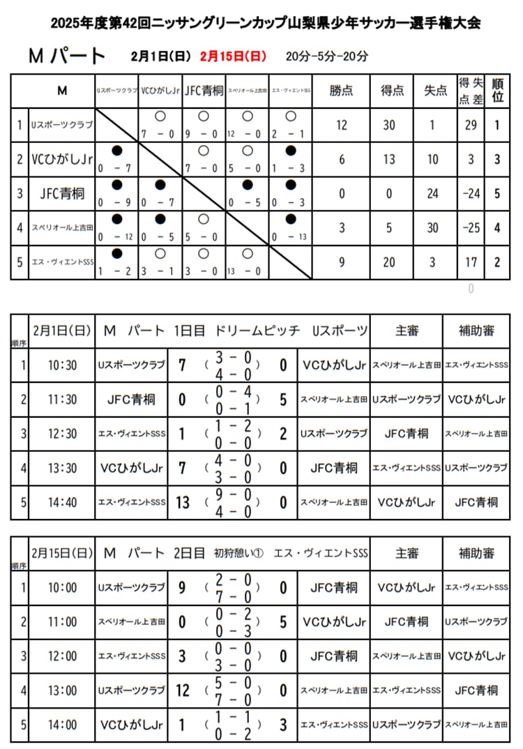 2026年2月1日(日)1日目予選リーグ