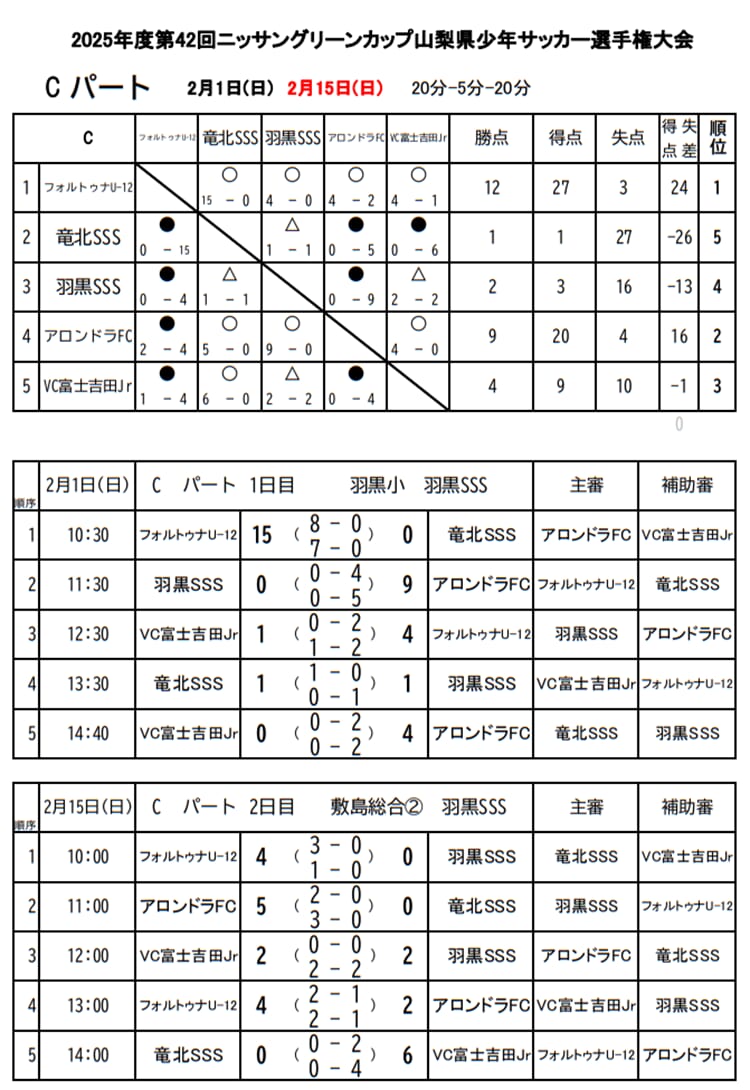 1位:フォルトゥナU12、2位:アロンドラFC U-12、3位:VC富士吉田Jr、4位:羽黒SSS、5位:竜北SSS