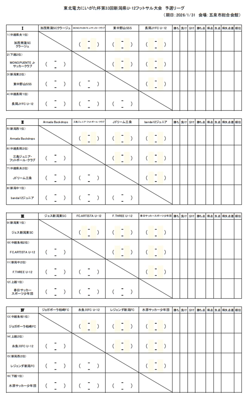 県大会:2026 年1月31 日(土) 五泉市総合会館大ホール 予選リーグ戦