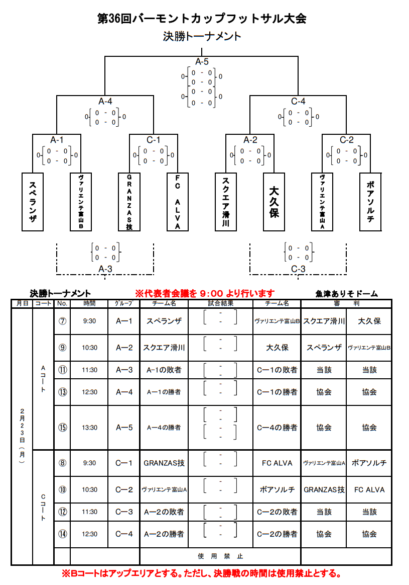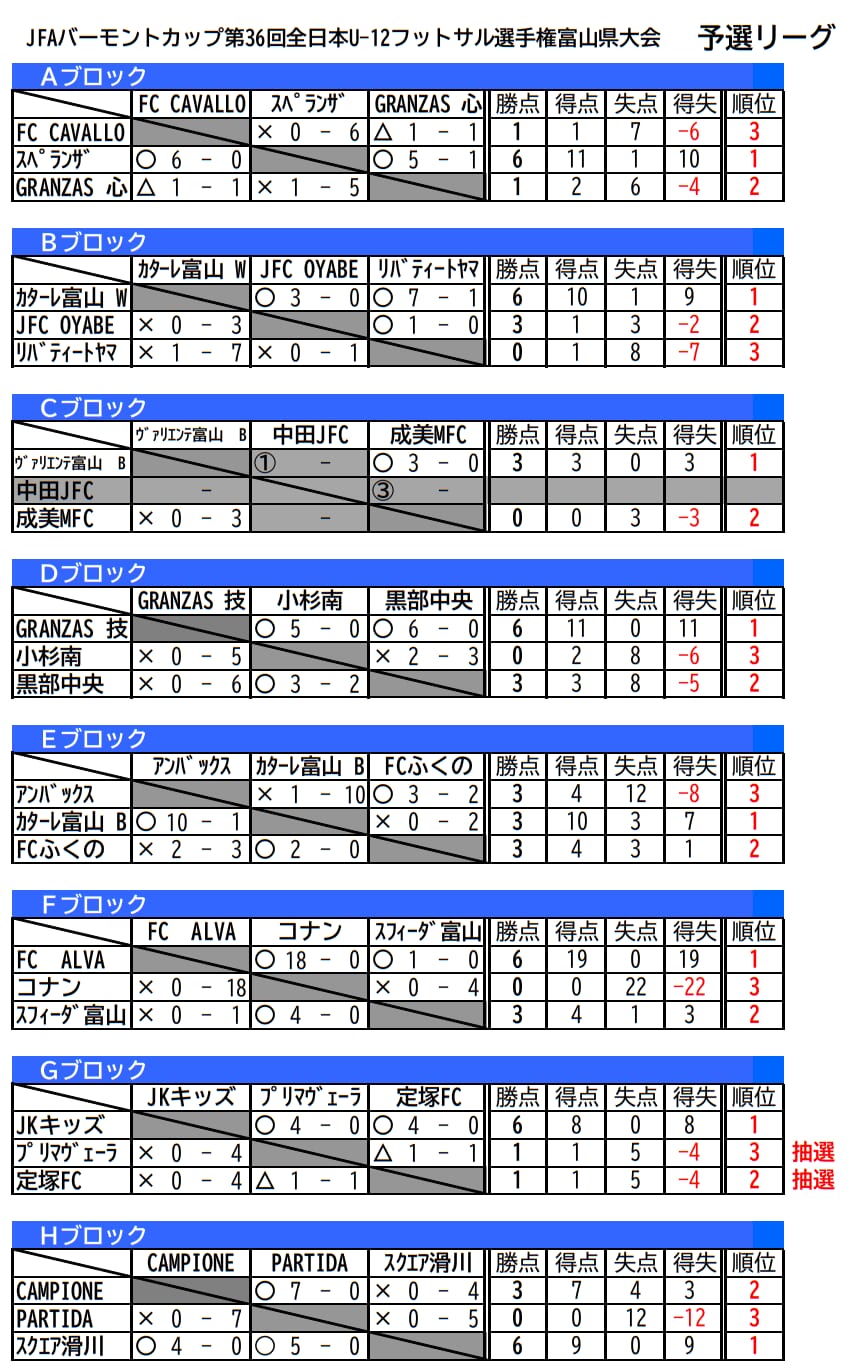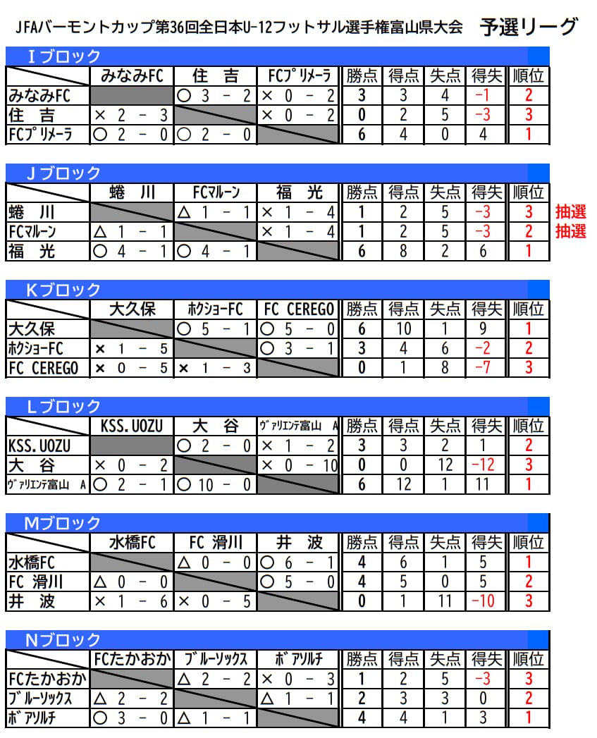 2/22 Jブロック:1位:福光、2位:FCマルーン、3位:蜷川 ※抽選
