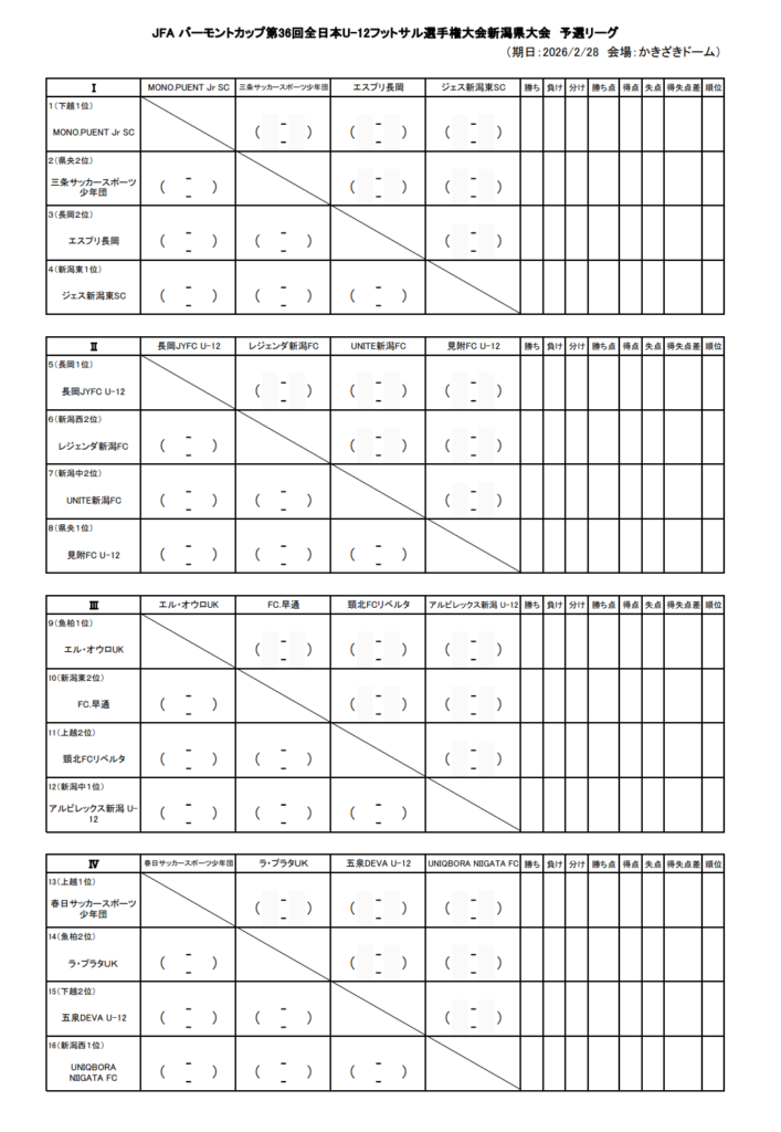Ⅱ:1位:長岡JYFC U-12、2位:UNITE新潟FC、3位:見附FC U-12、4位:レジェンダ新潟FC