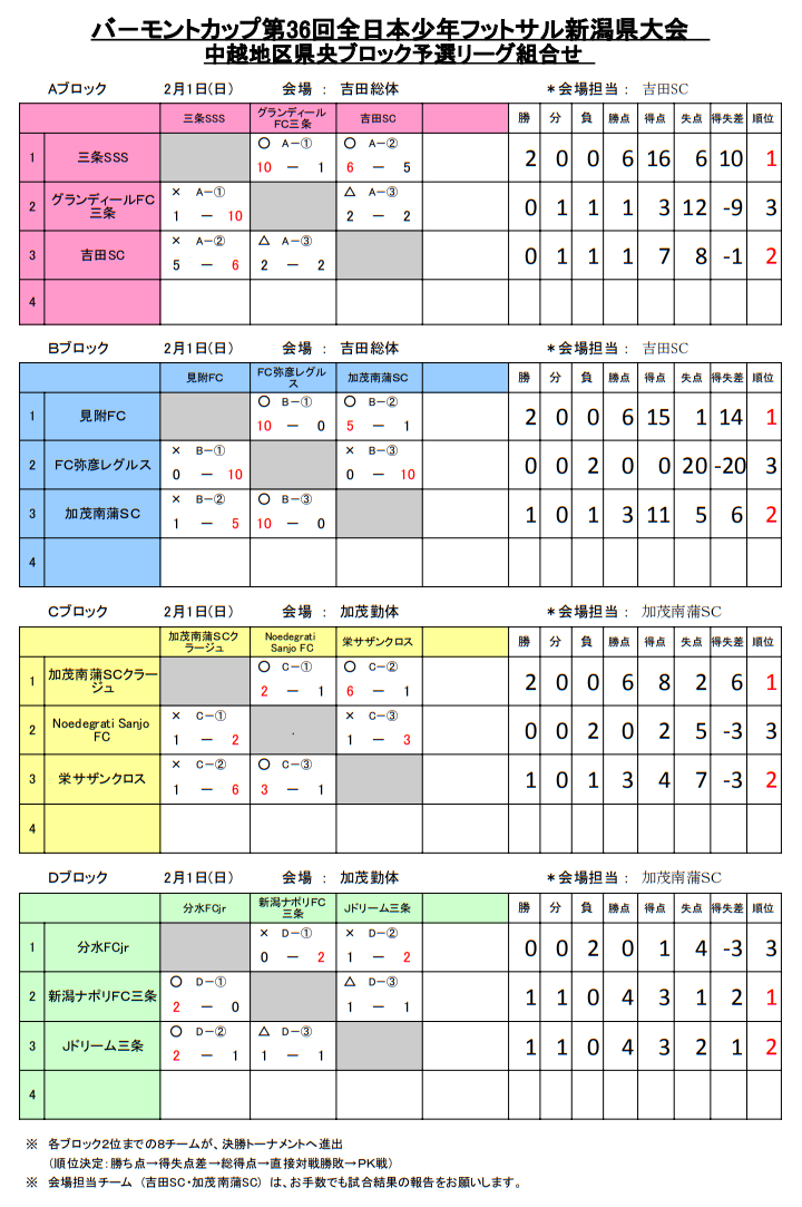 Ⅰ:1位:ジェス新潟東SC、 2位:MONO.PUENT Jr SC、3位:三条サッカースポーツ少年団、4位:エスプリ長岡