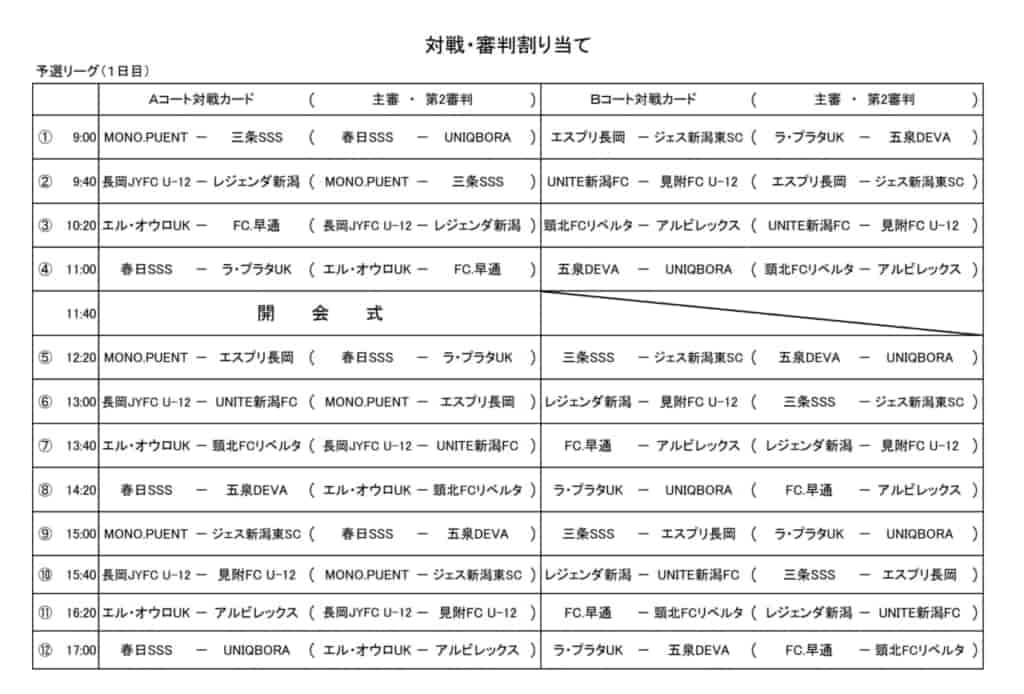 参照:アルビレックス新潟、MONO.PUENT Jr SC、頸北FCリベルタ、五泉DEVA、UNIQBORA NIIGATA FC、新潟県サッカー協会