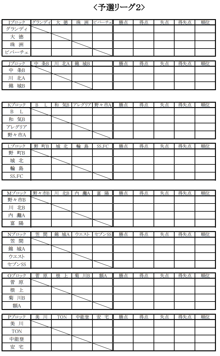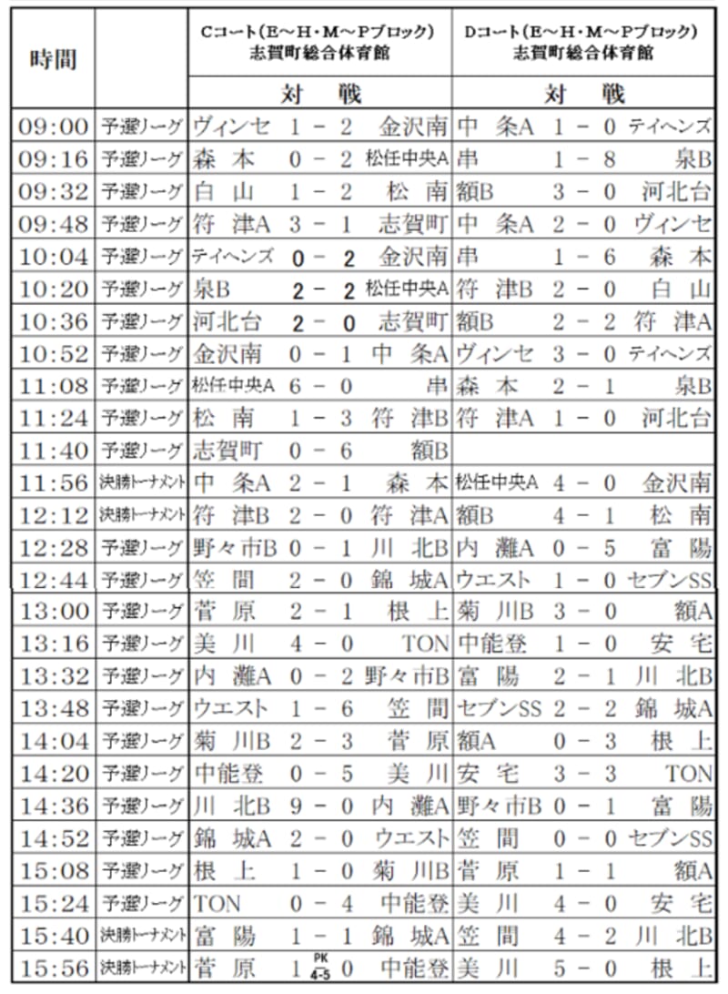 Bブロック:和気A、高松、内灘B、エスペリオ