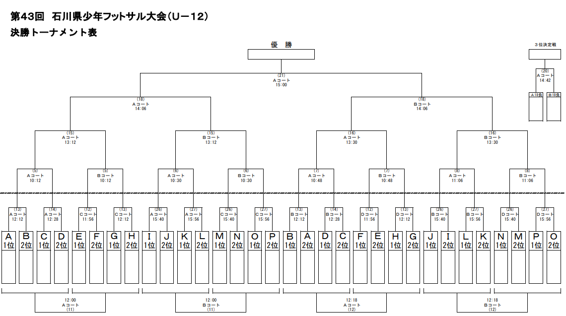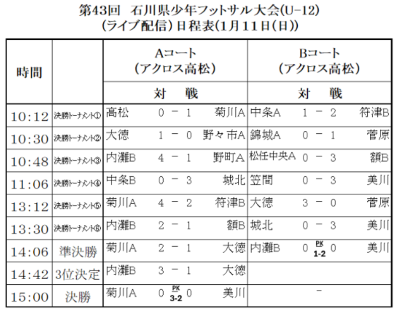 ・トーナメント;PK 戦(3名)により決する。PK 戦前のインターバルは1分間とする。