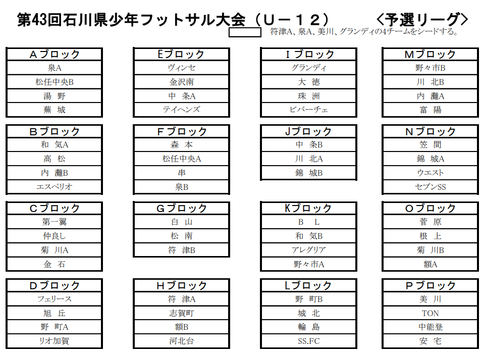 Aブロック:泉A、松任中央B、湯野、蕪城
