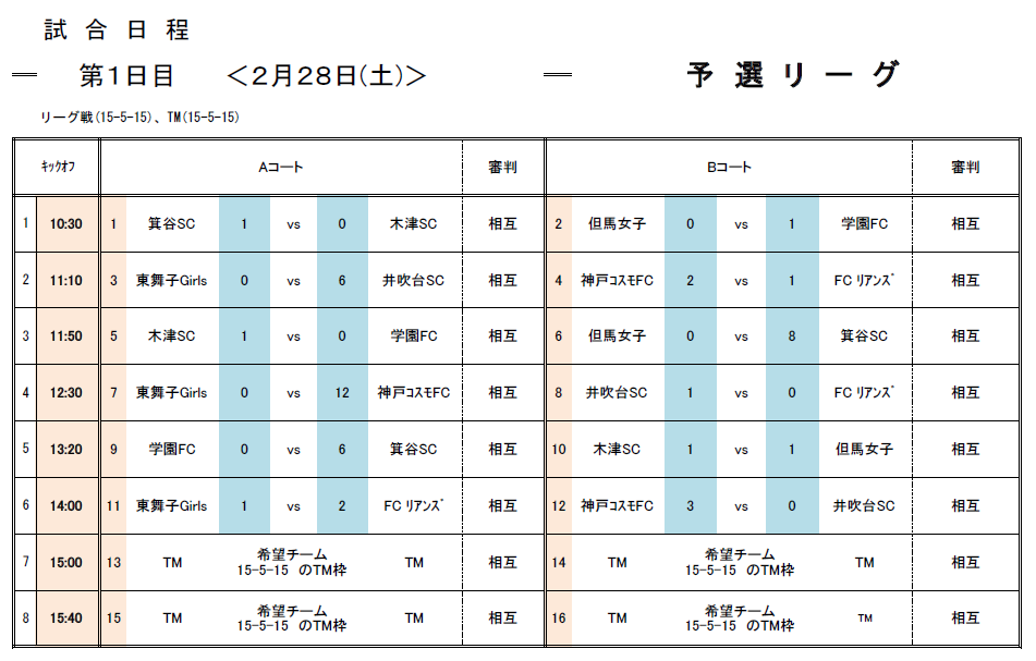 ・試合の結果により各チームに勝点(勝3,分け1,負0)を与える。